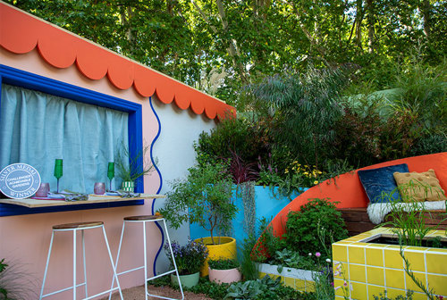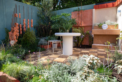 Inspired by dopamine decor and fashion, Pia’s garden responds to the increasing grey tones of the built environment. Colourful planting and bold patterns are used to create a sense of joy and optimism.