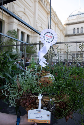 Yasmin Cooper from Certificate III in Parks and Gardens AHC31024 entered with their design, Well‑BEE‑ing, featuring a bee hotel at its centre.