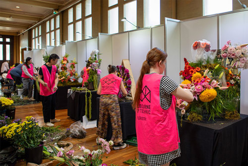 TAFE students from across Victoria competed in the Chrysco Flowers Student Floristry Competitions, with Melbourne Polytechnic students represented in both the Intermediate and Advanced categories. Four students from the Certificate II in Floristry Assistant SFL20115 competed in the Intermediate competition, while nine students from the Certificate III in Floristry SFL30115 entered the Advanced category.